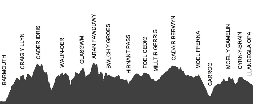The course traverses the continuous band of high mountain & moorland seen as the South Eastern skyline when viewed from almost all high ground in North Wales (see skyline pdf below). It follows Leverton’s Line (Mercia’s Charlie Leverton) in the main – though running in the opposite direction and carrying on a bit further… (but with the prevailing wind and the ‘easier’ running towards the end is my thinking). I knew nothing about Charlie’s exploits 35 years earlier as I sat on Foel Fenlli one evening and schemed with my RO’s brain at the skyline I have looked at for over 20 years but never truly seen before.